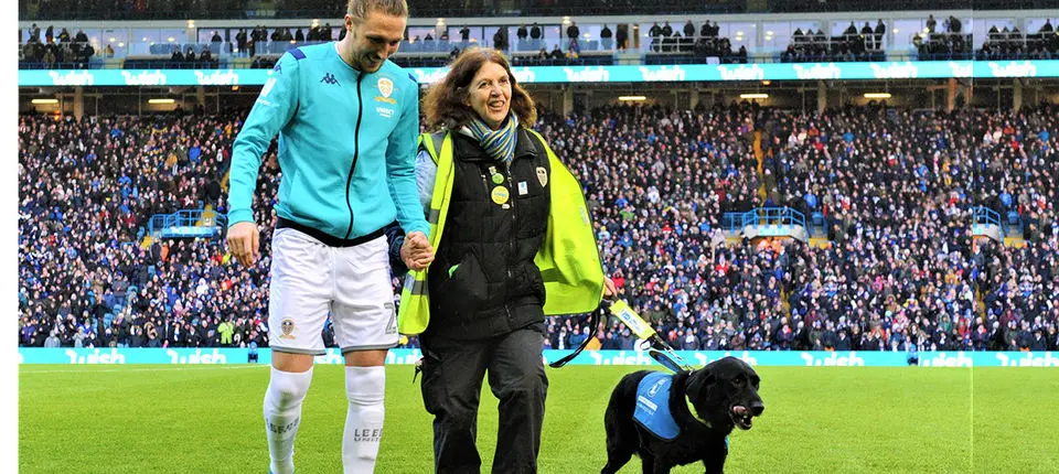 Leeds United welcomed Season Ticket Holder Nikki Allan and her retired guide dog to lead the team out with Captain Luke Ayling on Saturday afternoon, the perfect chance for Rita to say goodbye to the Elland Road crowd.